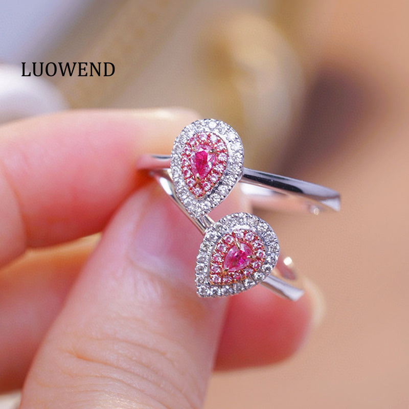 LUOWEND 18K White Gold Natural Pink Diamond Ring for Women