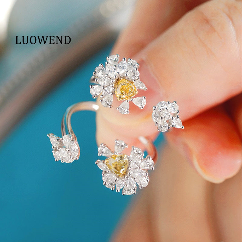 LUOWEND 18K White Gold Natural Yellow Diamond Ring for Women