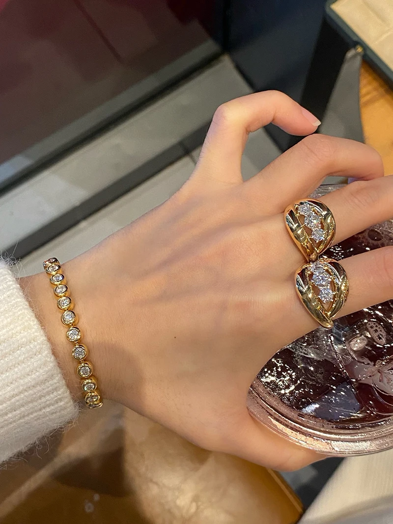 • Load image into Gallery viewer, LUOWEND 18K Yellow Gold Natural Diamond Ring for Women
