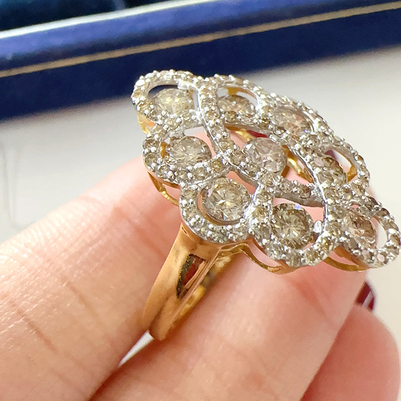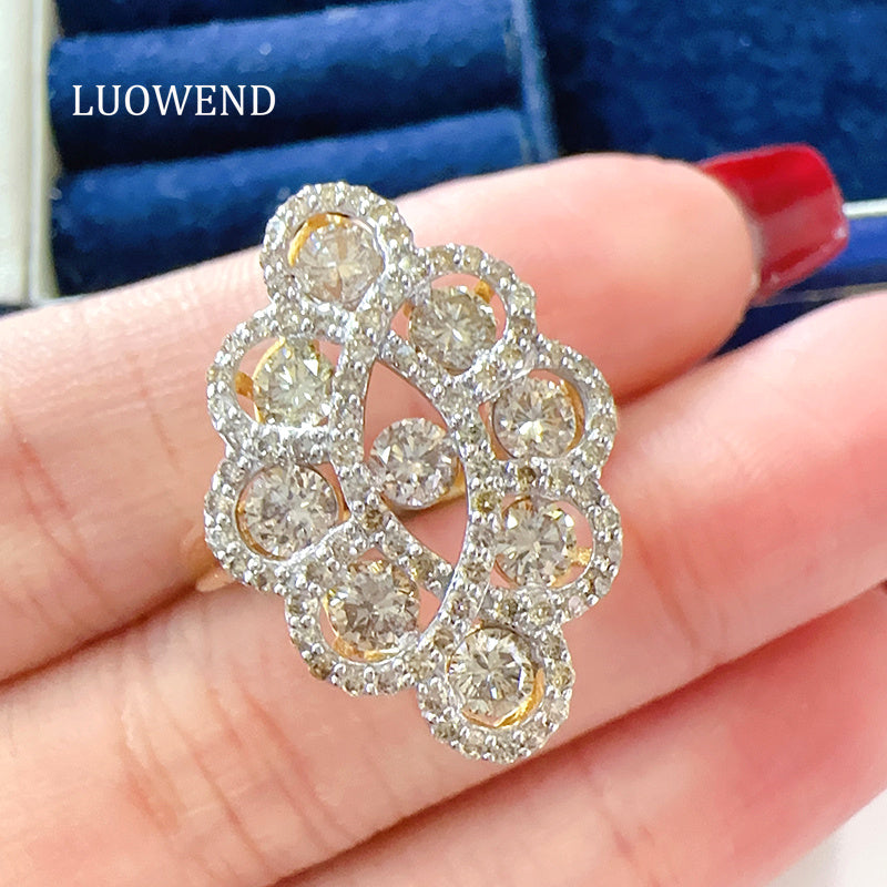 • Load image into Gallery viewer, LUOWEND 18K Yellow Gold Natural Diamond Ring for Women