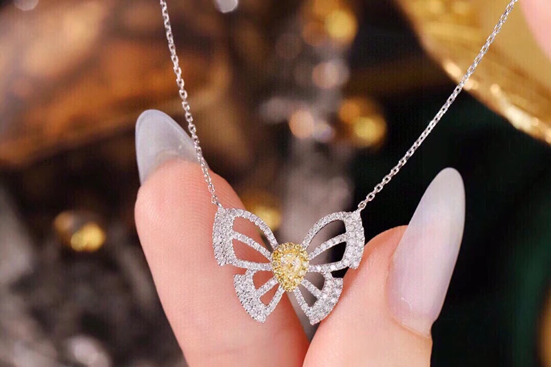 Necklace Style: 18K Gold Women Natural Diamond Pendant Necklace