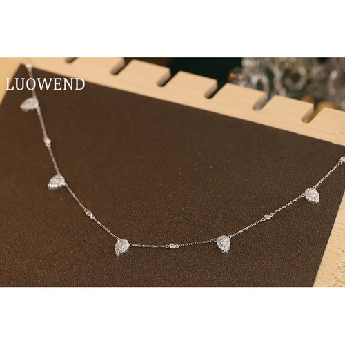 LUOWEND 18K White Gold Real Natural Diamond Necklace for Women