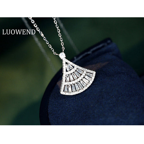 LUOWEND 18K White Gold Real Natural Diamond Pendant Necklace for Women
