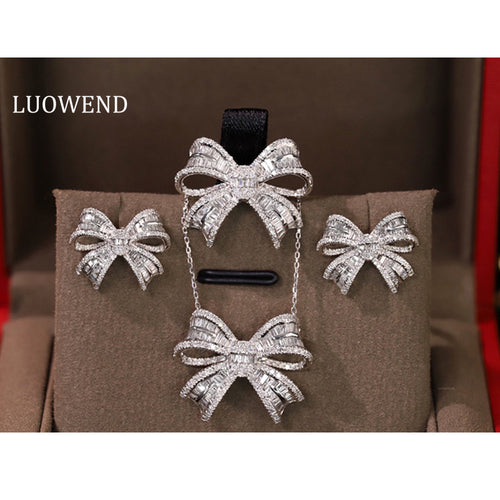 LUOWEND 18K White Gold Real Natural Diamond Necklace/Ring/Earrings for Women
