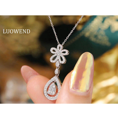 LUOWEND 18K White Gold Real Natural Diamond Pendant Necklace for Women