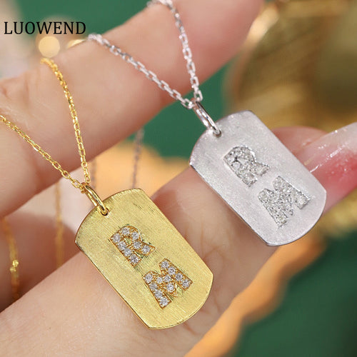LUOWEND 18K White or Yellow Gold Real Natural Diamond Pendant Necklace for Women