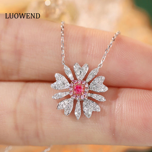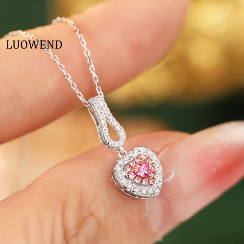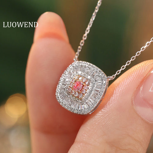 LUOWEND 18K White Gold Real Natural Pink Diamond Pendant Necklace for Women