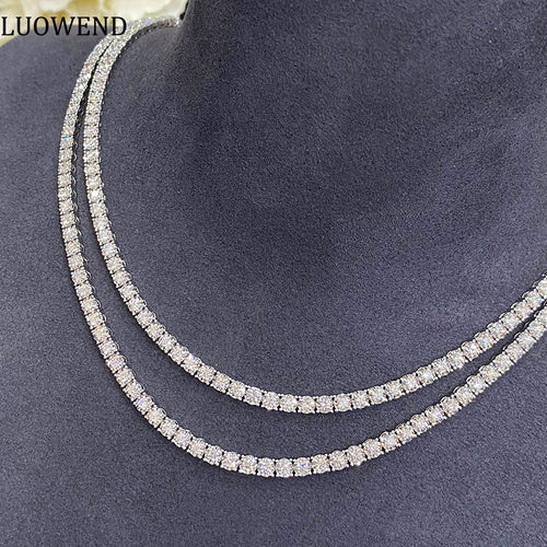 LUOWEND 18K White Gold Real Natural Diamond Tennis Necklace for Women