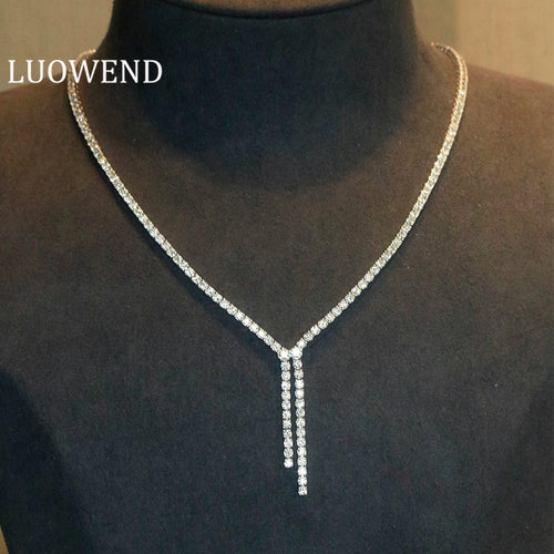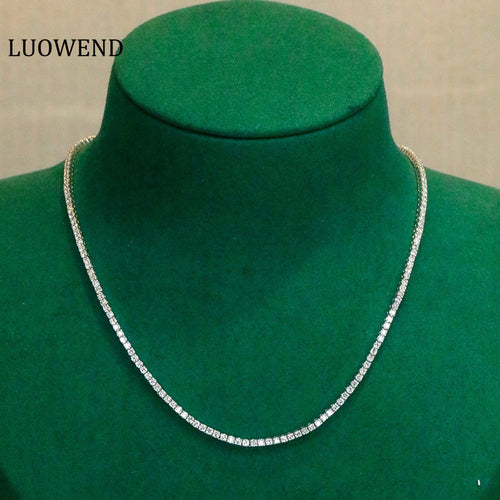 LUOWEND 18K White Gold Real Natural Diamond Tennis Necklace for Women