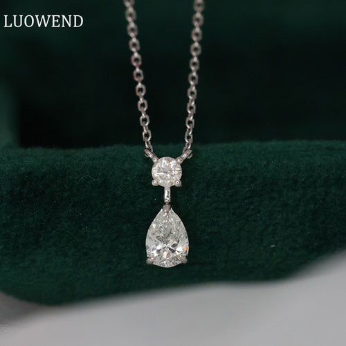 LUOWEND 18K White Gold Real Natural Diamond Pendant Necklace for Women
