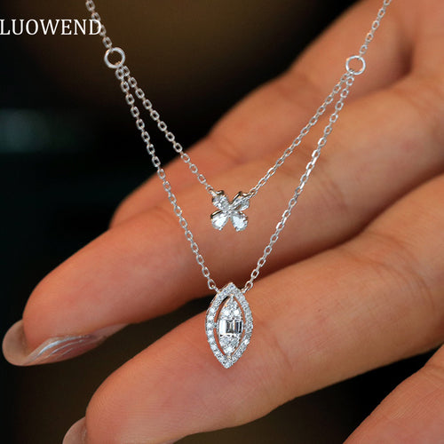 LUOWEND 18K White Gold Real Natural Diamond Pendant Necklace for Women