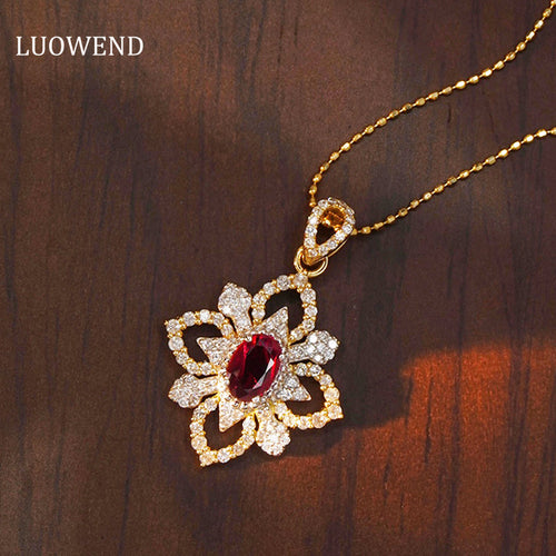 LUOWEND 18K White and Yellow Gold Real Natural Ruby and Diamond Gemstone Necklace for Women