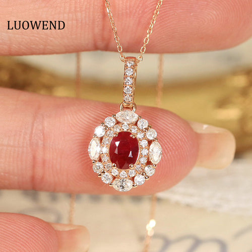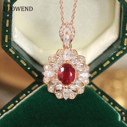 LUOWEND 18K Rose Gold Real Natural Ruby and Diamond Gemstone Necklace for Women