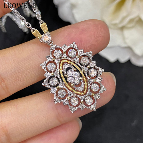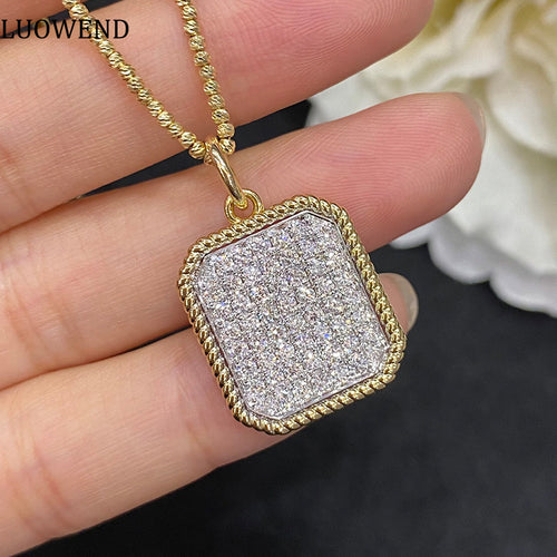 LUOWEND 18K White and Yellow Gold Real Natural Diamond Pendant Necklace for Women