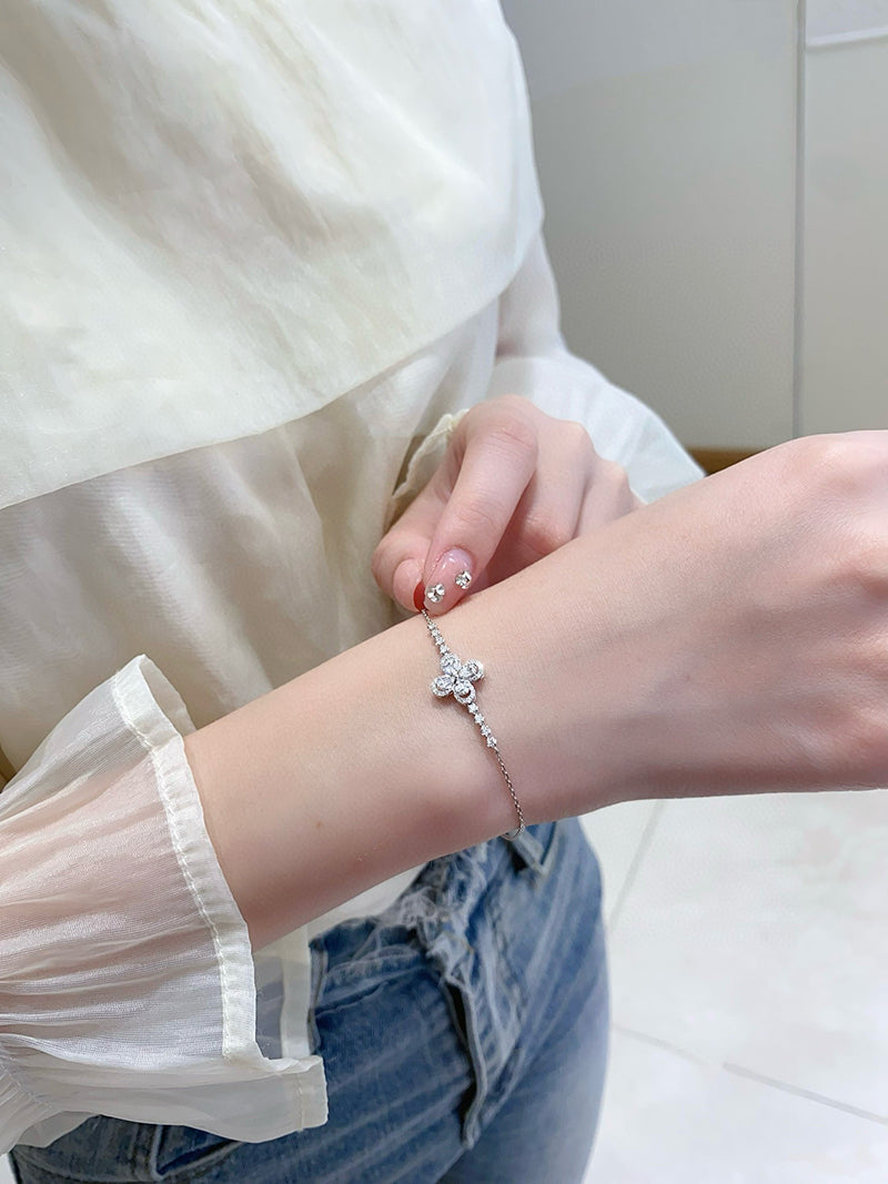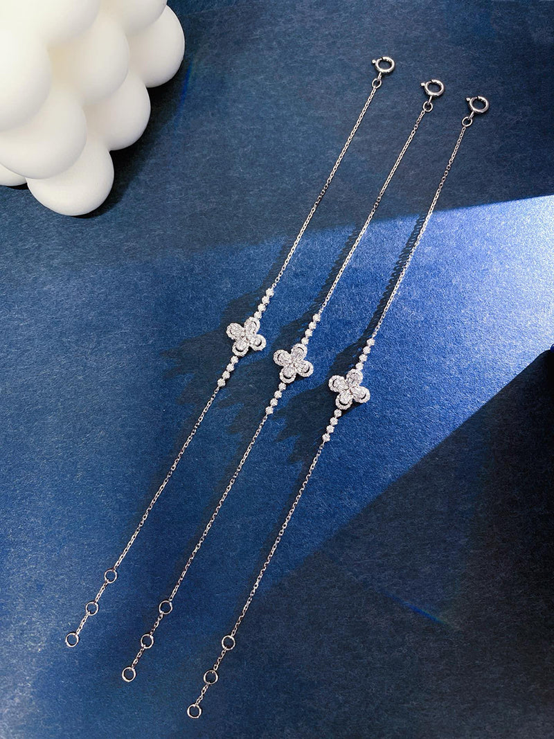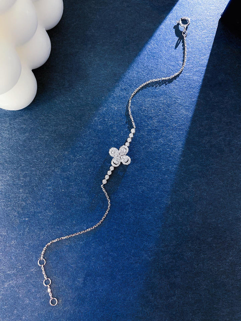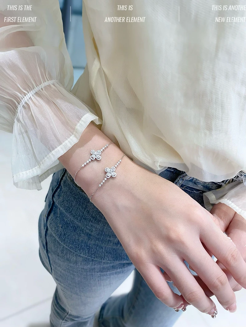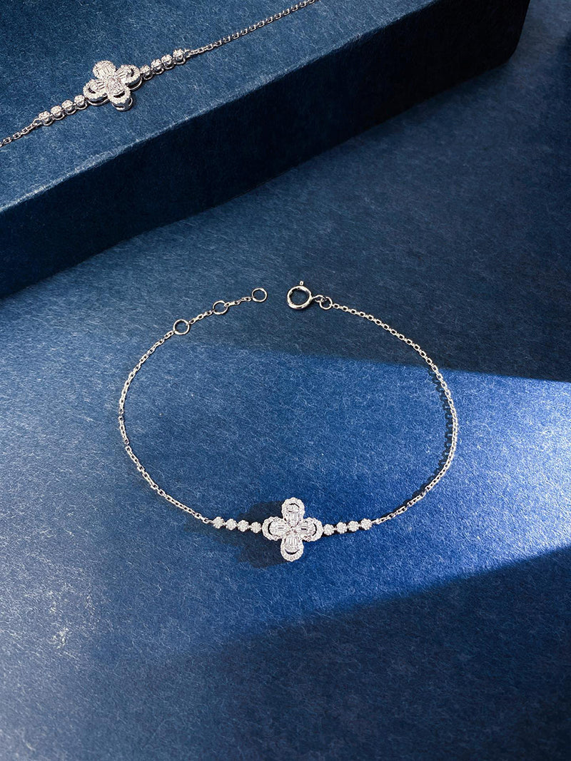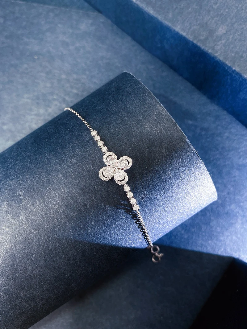 LUOWEND 18K White Gold Natural Diamond Bracelet for Women