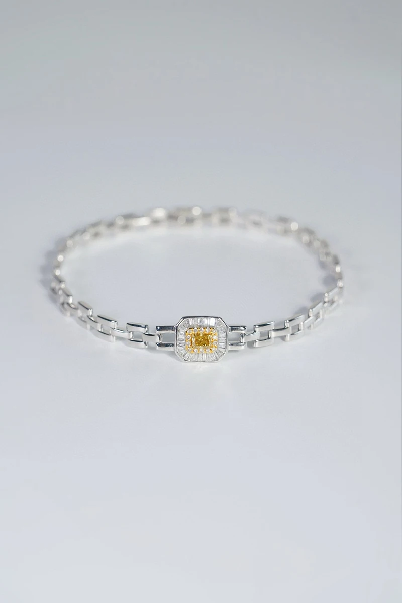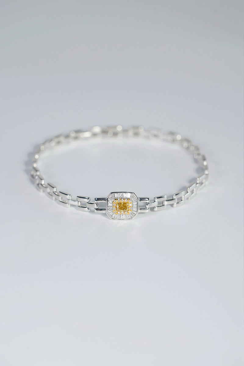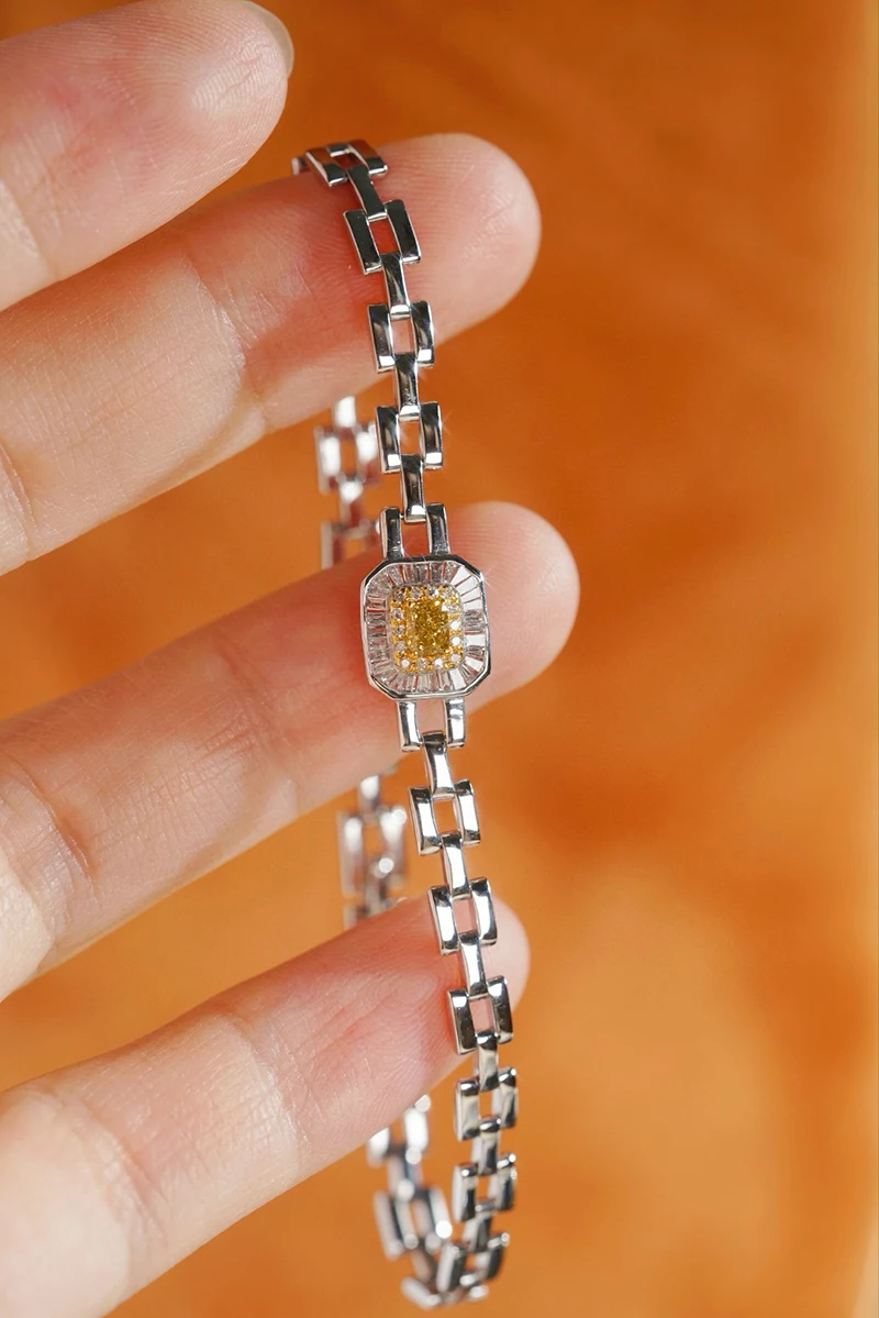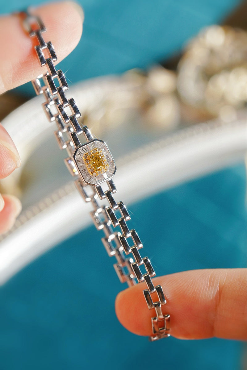 LUOWEND 18K White Gold Natural Yellow Diamond Bracelet for Women