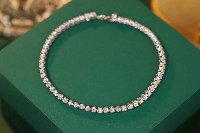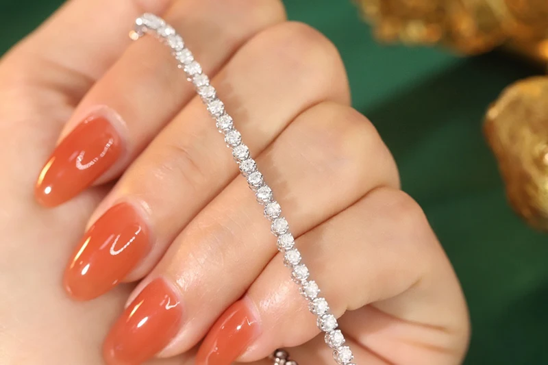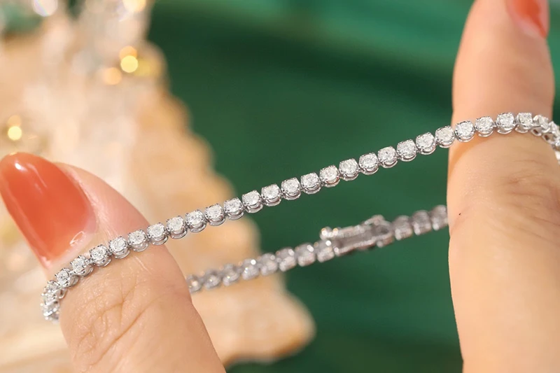 LUOWEND 18K White Gold Real Natural Diamond Bracelet for Women