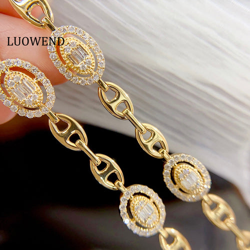 LUOWEND 18K Yellow Gold Real Natural Diamond bracelet and Anklet Chain for Women