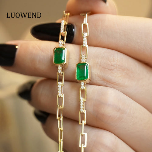 LUOWEND 18K Yellow Gold Emerald Bracelet for Women