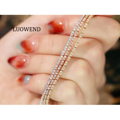 LUOWEND 18K White&Rose&Yellow Gold Real Natural Diamond Bracelet for Women