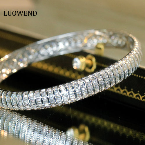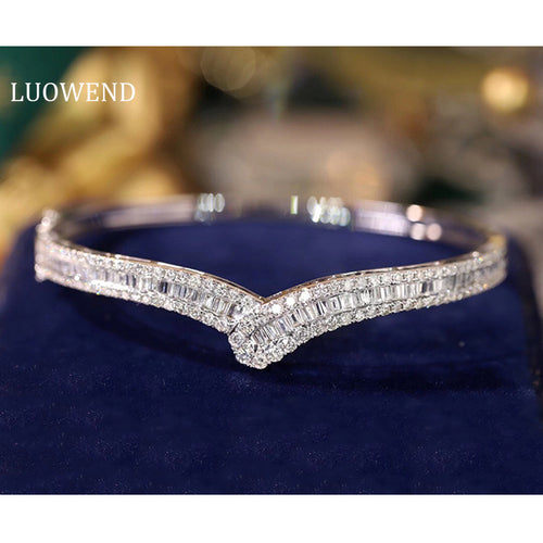 LUOWEND 18K White Gold Real Natural Diamond Bangle for Women