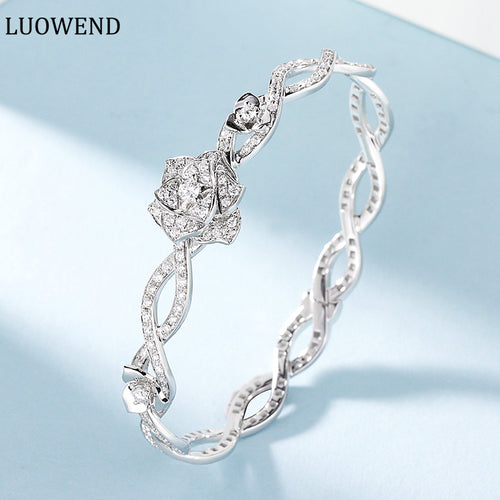 LUOWEND 18K White Gold Real Natural Diamond Bracelet for Women