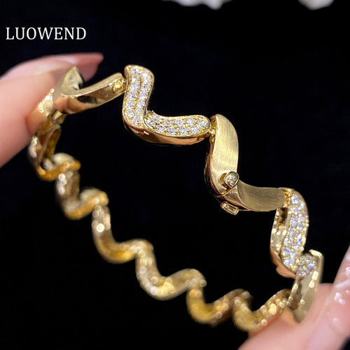 LUOWEND 18K Yellow Gold Real Natural Diamond Bracelet for Women