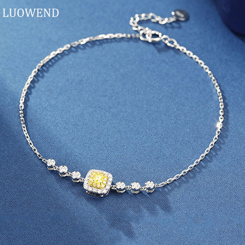 LUOWEND 18K White Gold Real Natural Yellow Diamond Bracelet for Women