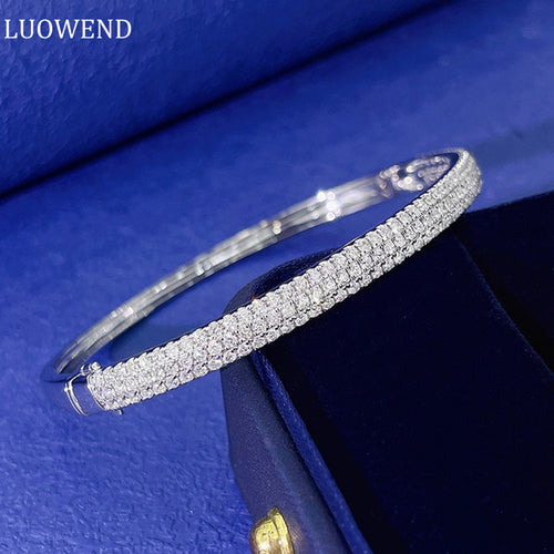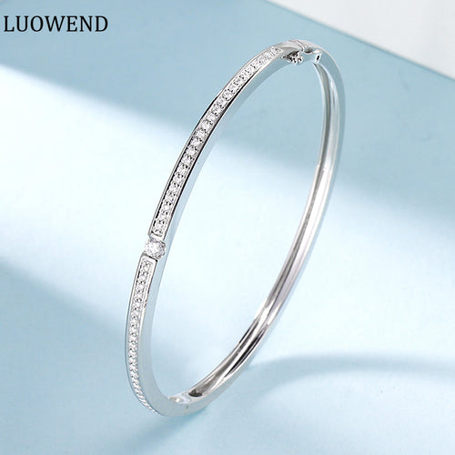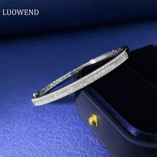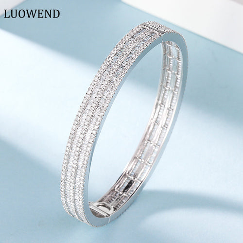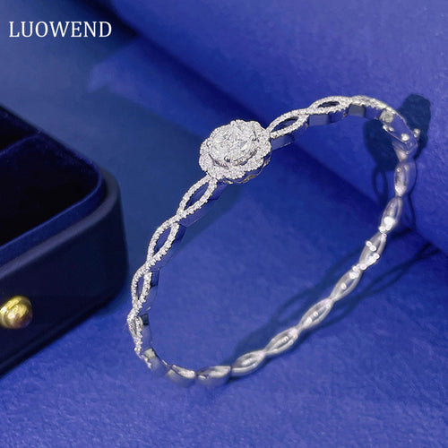 LUOWEND 18K White Gold Real Natural Diamond Bracelet for Women
