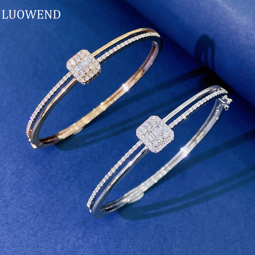 LUOWEND 18K White or Rose Gold Real Natural Diamond Bracelet for Women