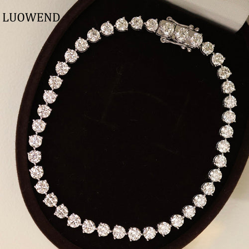 LUOWEND 18K White Gold Real Natural Diamond Bracelet for Women
