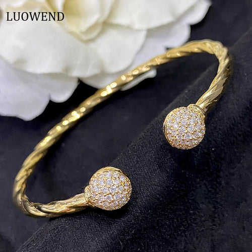 LUOWEND 18K Yellow Gold Real Natural Diamond Bracelet for Women