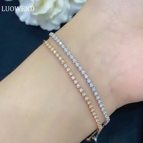 LUOWEND 18K White or Rose Gold Real Natural Diamond Bracelet for Women
