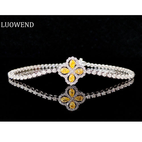 LUOWEND 18K White Gold Real Natural Yellow Diamond Bracelet for Women