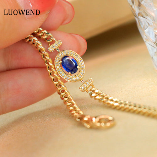 LUOWEND 18K Yellow Gold Real Natural Sapphire and Diamond Gemstone Bracelet for Women