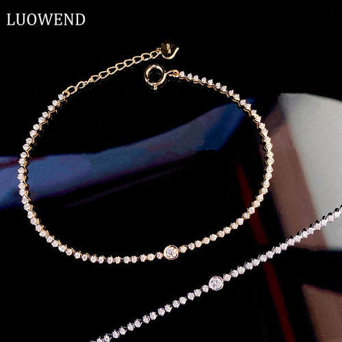 LUOWEND 18K White or Yellow Gold Real Natural Diamond Bracelet for Women