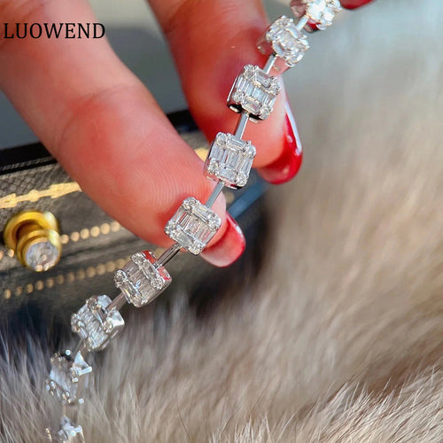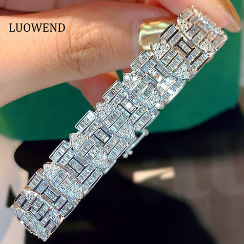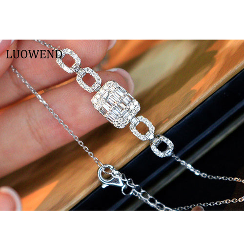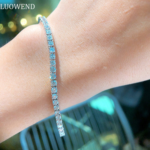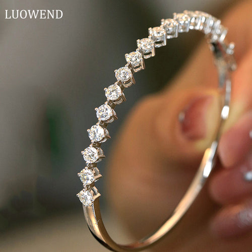 LUOWEND 18K White Gold Real Natural Diamond Bracelet for Women