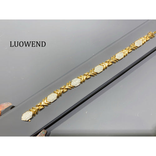 LUOWEND 18K Yellow Gold Natural Diamond Bracelet for Women