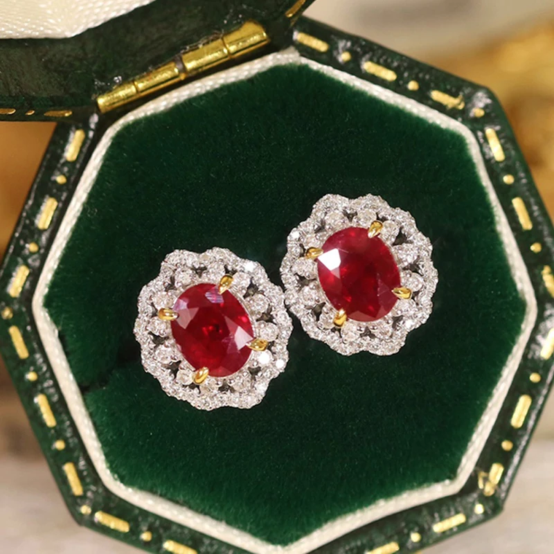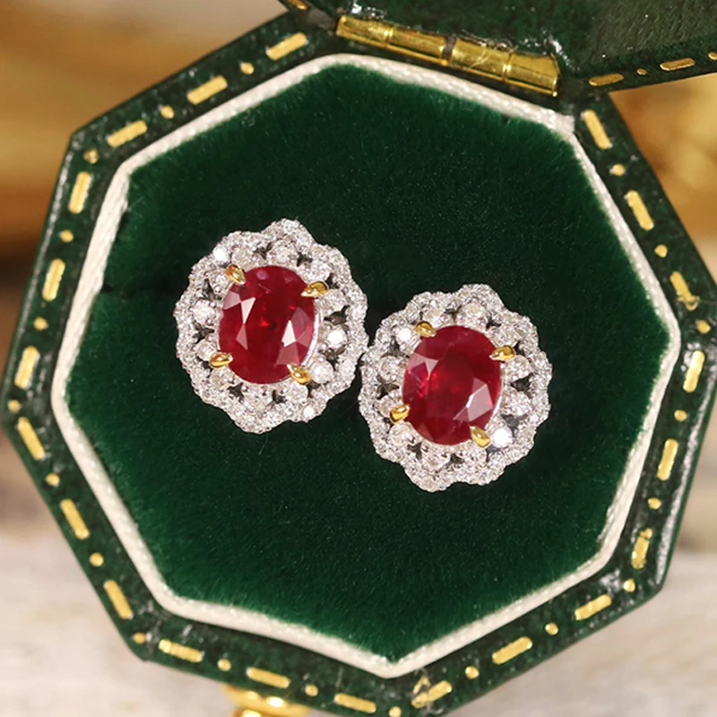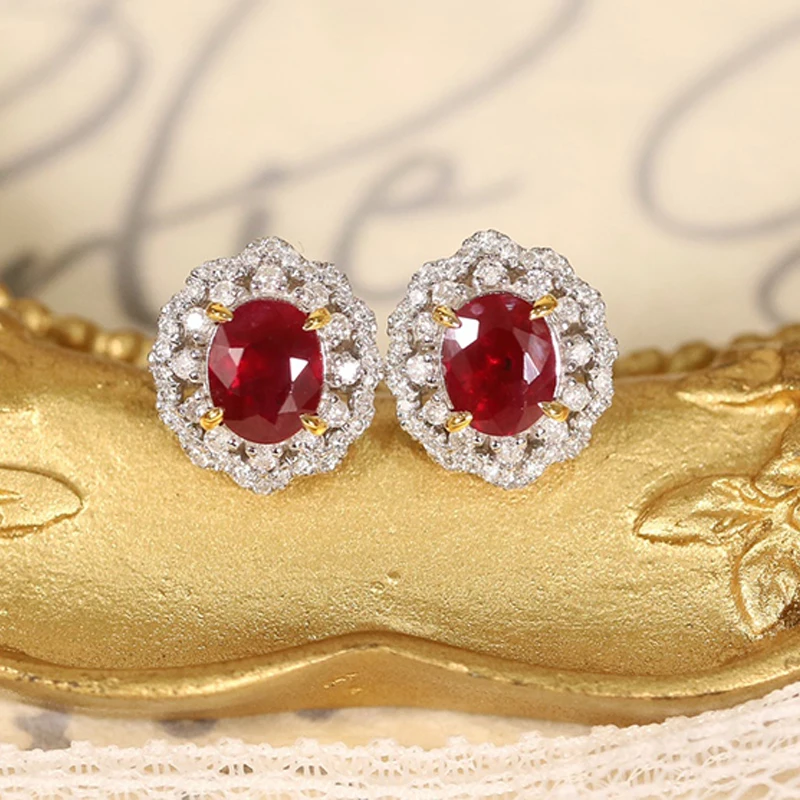 Earrings Style: 18K Gold Gemstone Women Diamond Engagement Stud Earrings