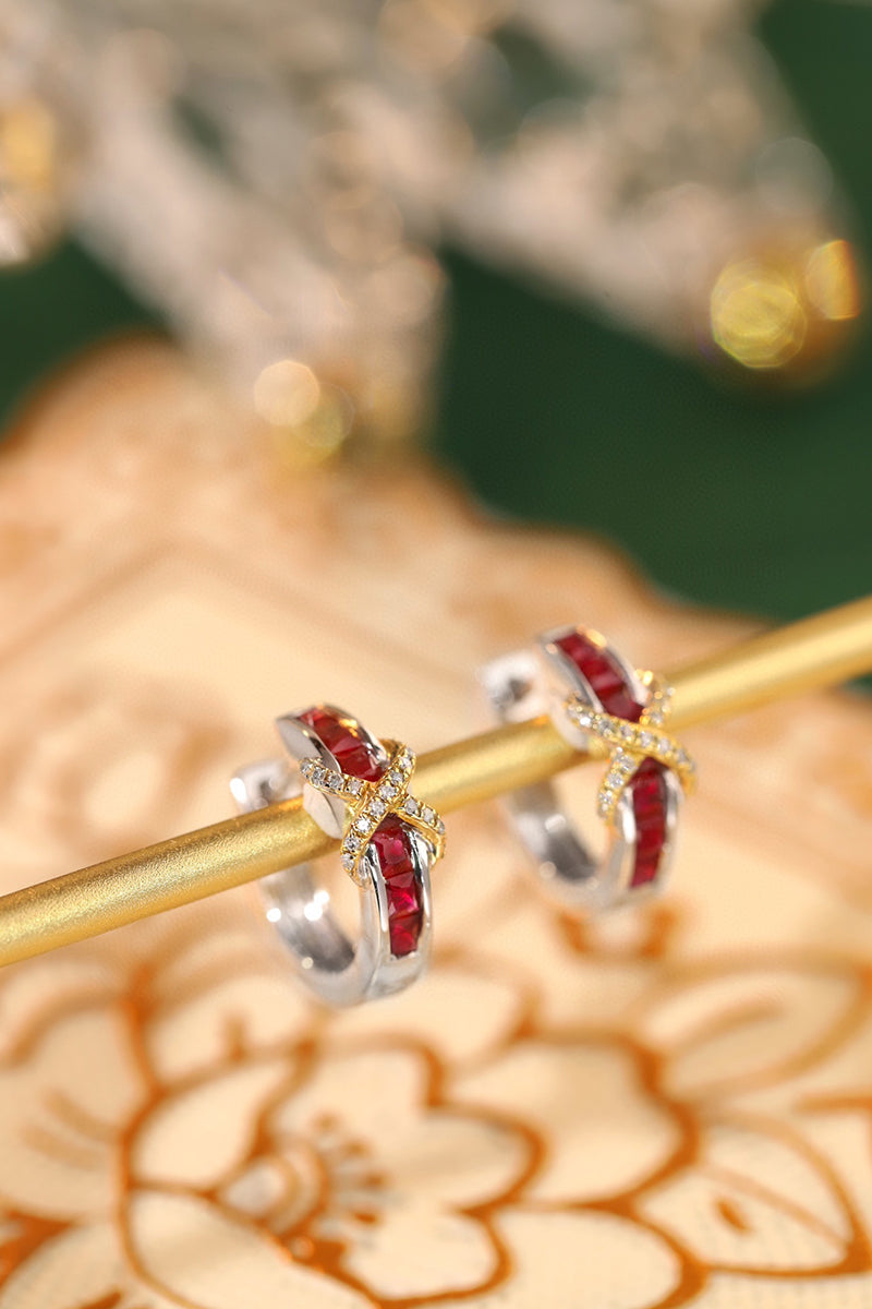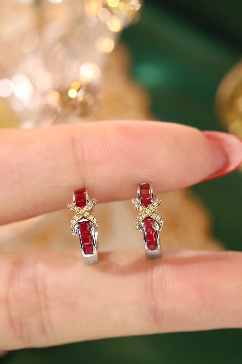 Earrings Style: 18K Gold Women Gemstone and Diamond Hoop Earrings